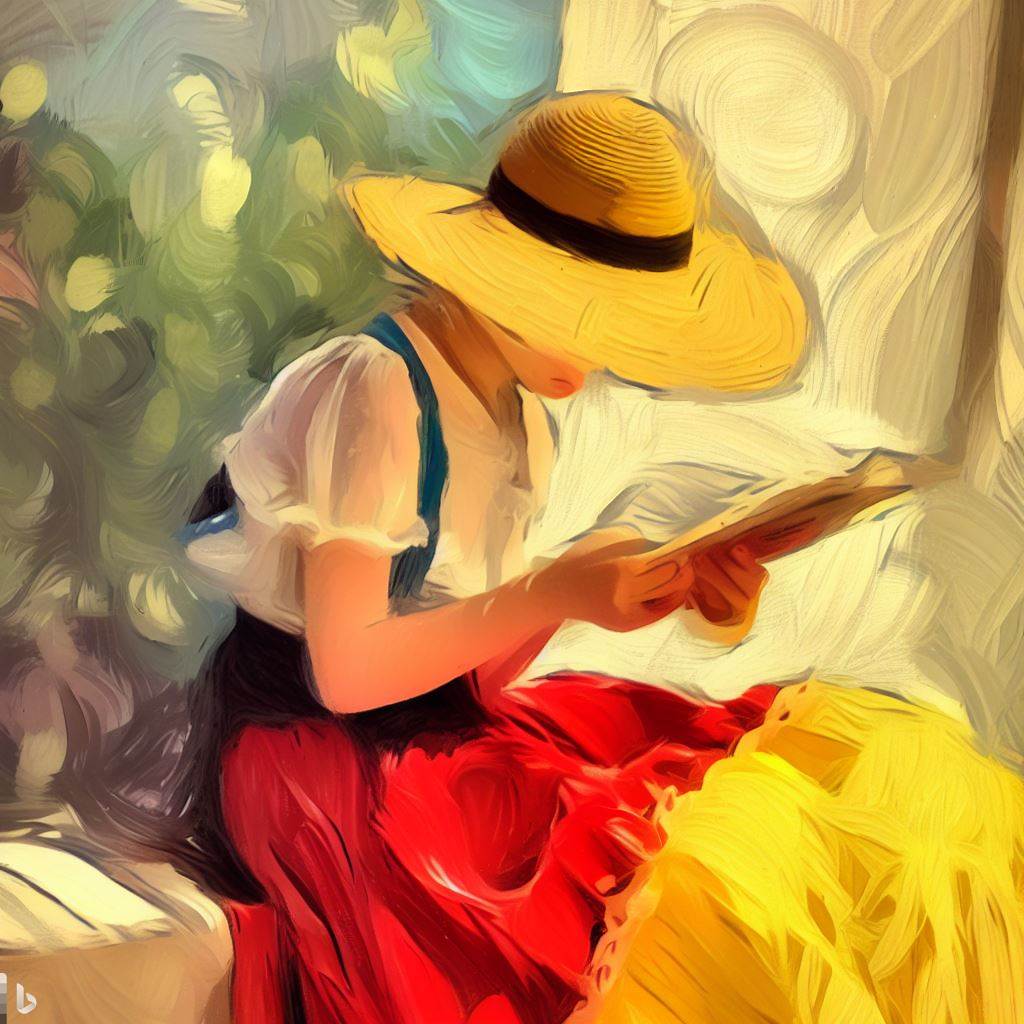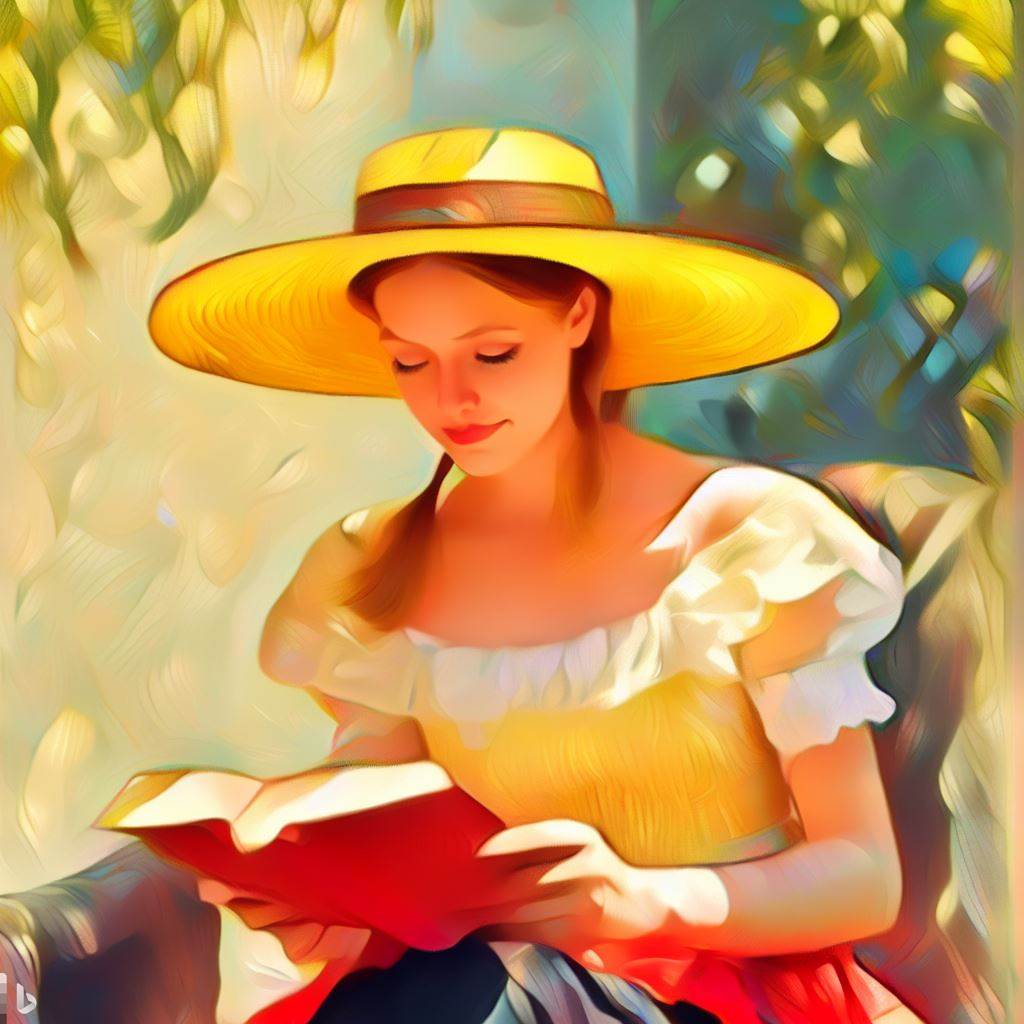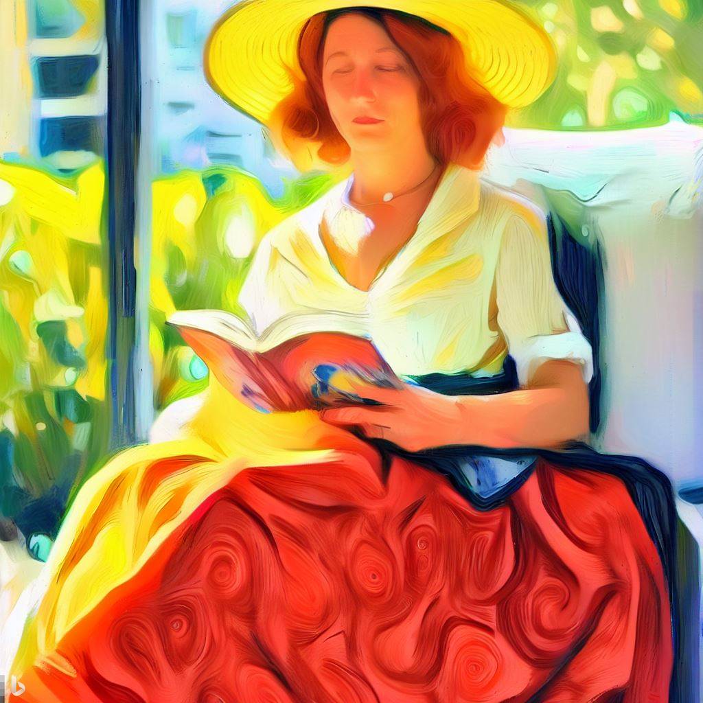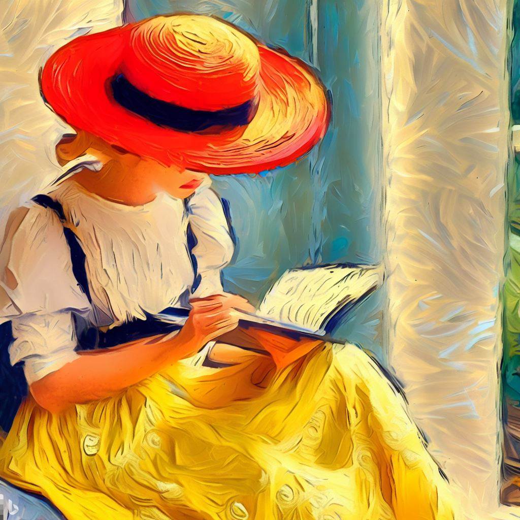 노란 모자에 빨간 치마를 입은 앙드레(독서) - Andrée in Yellow Turban and Red Skirt (Reading)