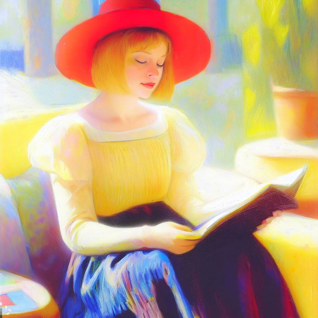 노란 모자에 빨간 치마를 입은 앙드레(독서) - Andrée in Yellow Turban and Red Skirt (Reading)