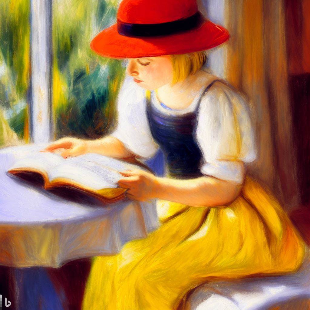 노란 모자에 빨간 치마를 입은 앙드레(독서) - Andrée in Yellow Turban and Red Skirt (Reading)
